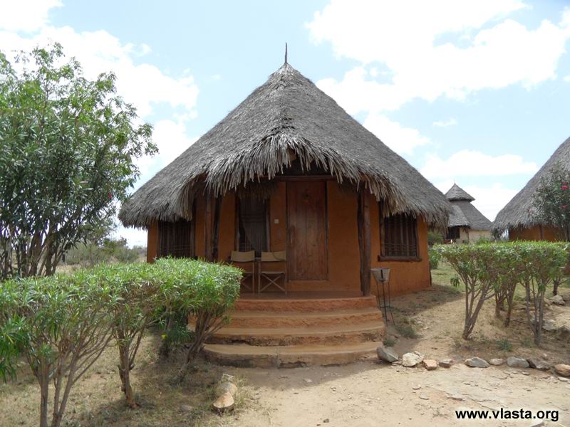 Buffalo Camp je vkusně postaven na strategické poloze hned vedle parku. Jednotlivé chatky mají vlastní koupelnu se sprchou, toaletu a prostornou obývací místnost. Po opravdu náročném dni jdu spát kolem půl jedenácté.