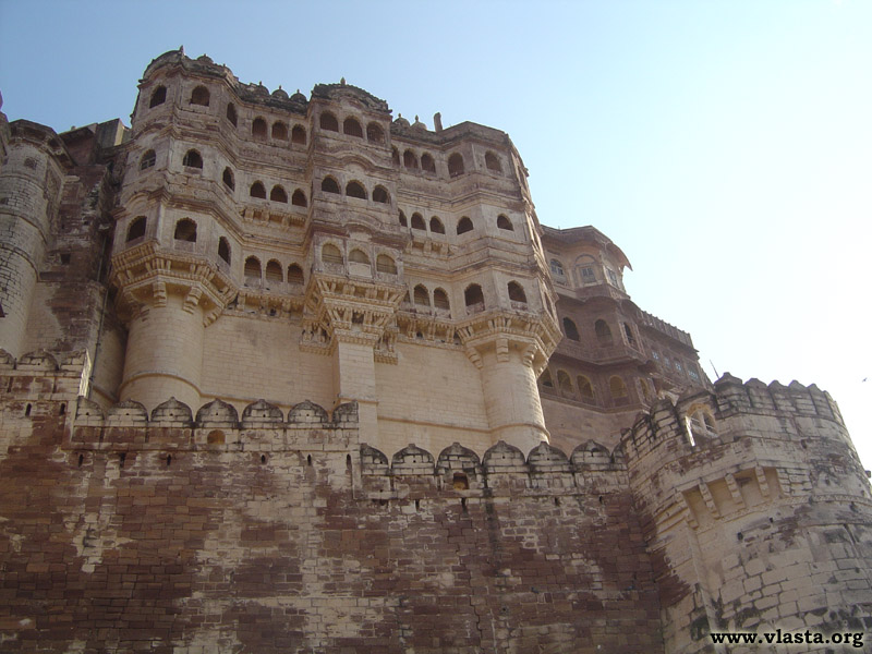V dnes dosti špinavém městě největší pozornost budí jeho největší dominanta - pevnost Mehrangarh. Pohled z obvyklých střešních restaurací na mohutné opevnění pevnosti (dosahující výšky až 36 metrů a šířky až 21 metrů) je fascinující, až hrůzu nahánějící. Jedna z největších pevností v Indii je postavena na asi 125 m vysokém pahorku nad městem. Vznikla společně se založením města. Dnes má celkem sedm vstupních bran. Některé byly postaveny na oslavu vítězství nad Jaipurem či Bikaner. V pevnosti se nachází několik paláců jako palác Perel, Požitku či Květin. Z hradeb je opravdu nádherný pohled na celé město. Vstupné do pevnosti zahrnuje poplatek za fotoaparát, kameru a audio-pruvodce.