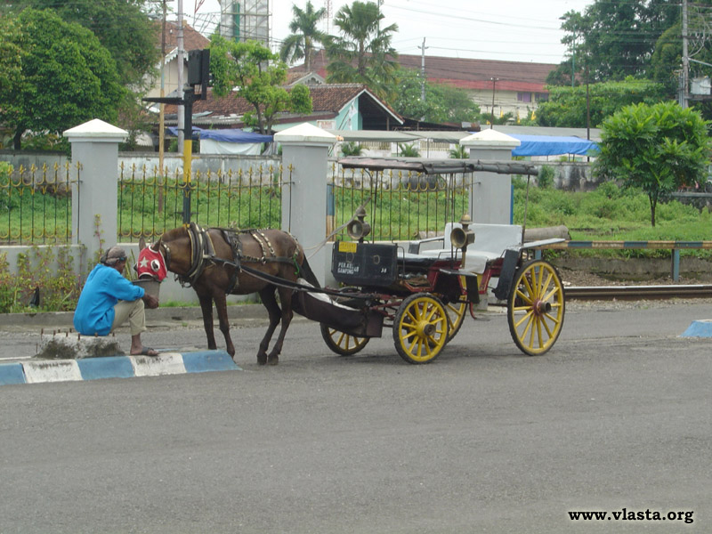 Do města Yogyakarta, zkráceně se mu říká "Yogya", přijíždím vlakem ze Solo. Cesta trvala pouze hodinu. Vlakové nádraží je v centru města u konce hlavní třídy - Jl Malioboro. Jižně od nádraží a západně od této ulice se nachází čtvrť Sosrowijayan s levným ubytováním. Dá se zde spát v levných ubytovnách, hotýlcích i v jakých si pensionech zvaných "Losmen". V losmen Suryo se za 50 000 IDR na noc s kávou a čajem v ceně usazuji i já. Je to nejlevnější ubytování v Indonésii během mého pobytu.