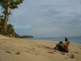 Balekambang Beach je zatím turisty málo navštěvovanou oblastí. Přijíždím sem mimo sezónu a ve všední dny. Takže jsou otevřeny snad jen dvě restaurace. Pouze v jedné mluví pán trochu anglicky. V této restauraci nabízí nyní jen dvě jídla... První noc spím pod širým nebem na opuštěné pláži. Je tu nádherně. Ze spánku mne v noci vyruší hlasy několika mladíku a jejich baterky. Něco na pláži hledají, ale mne si nevšímají. Přesto se rozhoduji následující noc strávit v jedné z chatek. Bohužel jsem jediný platící host, a tak kvůli mne nepouštějí generátor. Dostávám dvě svíčky, kterými si mám svítit... Romantika za vyšší cenu nežli hotel v Malangu s TV a snídaní....