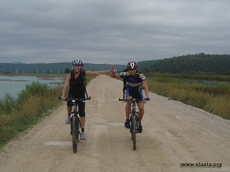 Trasa nás přivedla také k městečku Motovun, které se tyčí na kopci (277 m) nad údolím řeky Mirny. Ze všech stran vypadá jak "orlí hnízdo". Středověká obec je typickou ukázkou benátské koloniální architektury. Má přibližně 500-600 obyvatel. Městské hradby pocházejí z 12.-13.stol. a i když se to asi nemá, tak jsem se po nich projeli na kolech ;) Po prohlídce a občerstvení pokračujeme dál po Parenzaně. Bohužel kvalita cesty se zhoršila - povrch je více kamenitý a téměř pořád do mírného kopce...