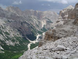 Via Ferrata Giovanni Lipella je na západní stěně a dle průvodce středně obtížné náročnosti. Jde o jednu z nejvyhledávanějších ferat. Svoji oblíbenost získala díky nádherným výhledům a pro nelezce dostatečným navozením pocitu "něčeho nového". Přibližně po čtyřech a půl hodinách se dostáváme k místu zvaném Punta Tre Dita (2694m), kde se lze rozhodnout, zda na vrchol budeme pokračovat skrze feratu či ze severní strany po již nezajištěné ale lehké stěně. Poslední část feraty je obtížnější, jde již převážně o lezení vzhůru a ne o traverzování. Z dálky mi to přišlo, že budu lézt téměř kolmo. Ale to vypadalo opravdu z dálky. Stěna je velice členitá, takže jsem na konec byl překvapen, jak lehce jsem to vylezl. A za to děkuji hlavně mým polským přátelům, kteří mi svojí přítomností velmi pomohli.