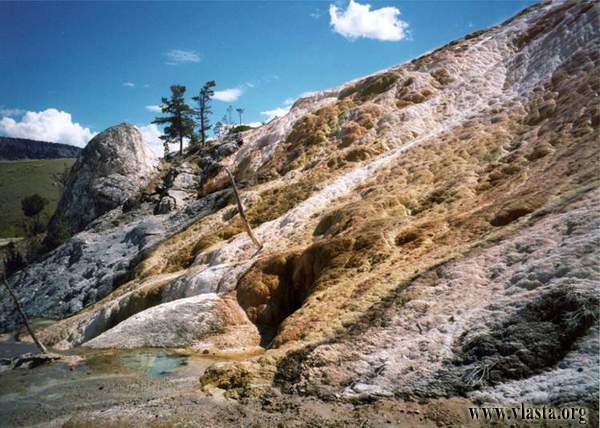 Mammoth Hot Springs these features are quite different from thermal areas elsewhere in the park. Several key ingredients combine to make the Mammoth Hot Springs Terraces: heat, water, limestone, and a rock fracture system through which hot water can reach the earth's surface. The colors are due to the presence of different heat-tolerant bacteria.