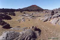 Rychle si vařím snídani a vydávám se na pochod. Dnes mě čeká nejdelší úsek - 19 kilometrů neustálého stoupání k Mauna Loa Cabin na východním okraji vrcholového kráteru. Červená láva se jen pár metrů za Red Hill Cabin mění v šedou až černou. Na Havaji se vyskytují dva typy lávy, jež mají shodné chemické složení ale liší se vzhledem. Tato forma lávy záleží na teplotě a obsahu plynů při jejím vzniku. Teplejší a na plyny bohatší je forma Pahoe-hoe, jež se vyznačuje hladším a tvarově chudším povrchem. Naopak forma ´a´a je velice drsná, kostrbatá a tvoří bizardní formace. Na starší lávu působí celá řada dalších vlivů jako její stáří, klimatické podmínky, střídání teplot, voda, vítr,....Červená láva bývá staršího data nežli černá a šedá.